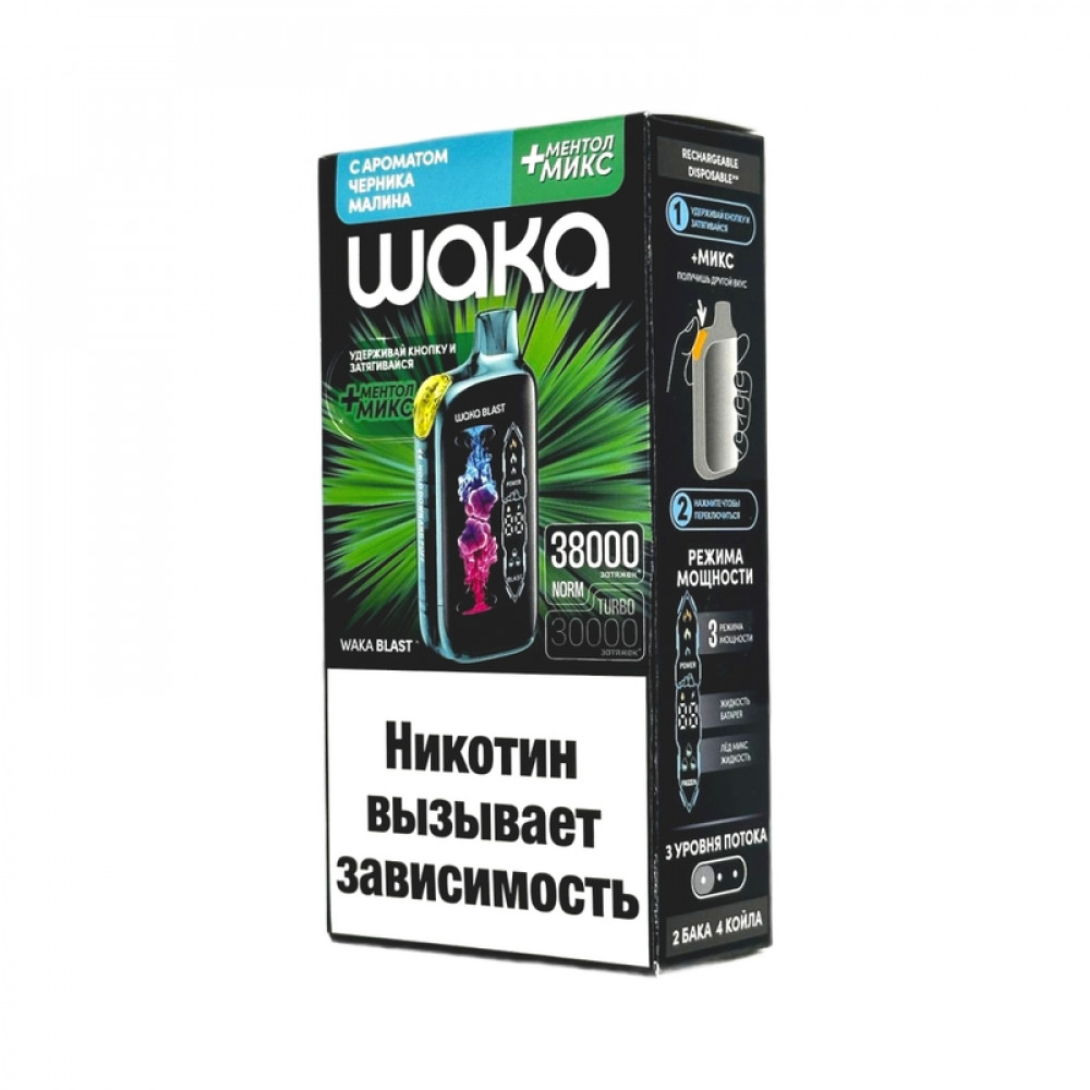 WAKA BLAST 38000 Hard - Черника малина + ментол микс - купить в Моршанске